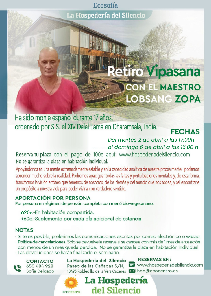 Retiro Vipasana en Semana Santa. Con Lobsang Zopa.